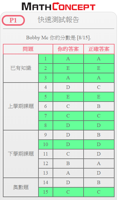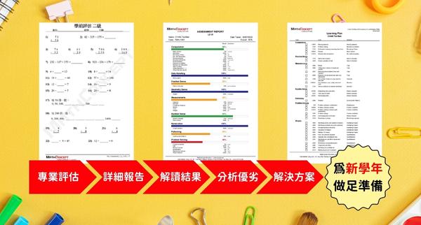學生入讀前,先接受學前評估「MathConcept Diagnostic Test」,以準確地判斷學生的數學能力。評估分為兩部分,需時約 60 ~ 90 分鐘。第一部分是綜合筆試:透過精心編排的測試題目,判斷學生各環節的優勢與弱點;第二部分是口試:主要評估學生對數學概念的理解,具體了解學生日常所面對的學習困難。