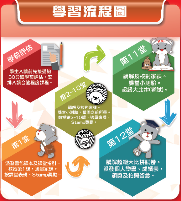 學生完成評估後,導師將詳細解釋評估結果,度身訂造個人學習計劃。學生可按實際需要,選擇中文版或英文版教材,設定每週上課時間,以完成學習計劃。導師將根據學生的校內成績、測驗分數和家長的評語,判斷其在數學概念、應用技巧、數感思維和學習態度上的進展,適時調節個人學習進度,真正百分百因材施教!數學補習推介No.1