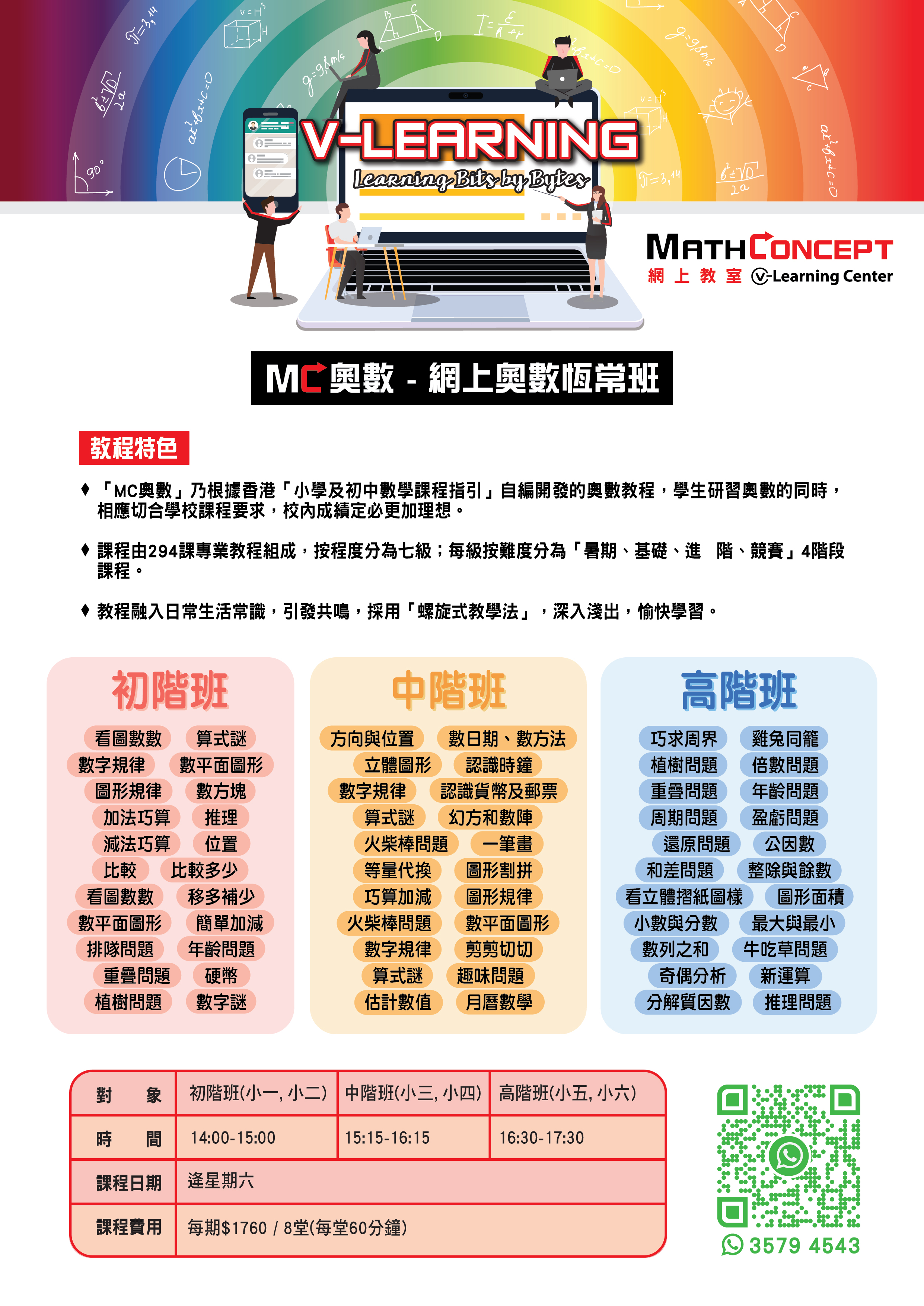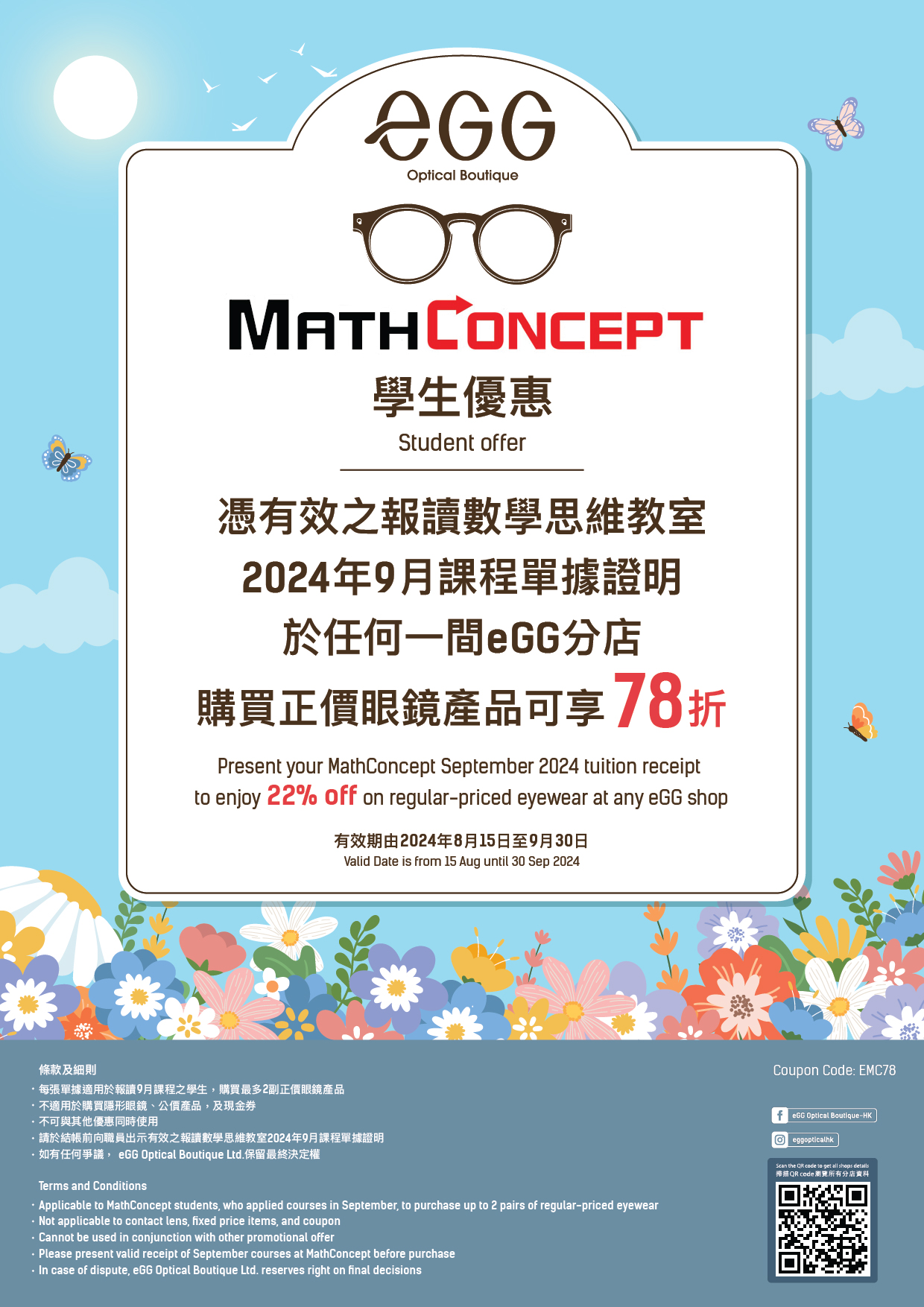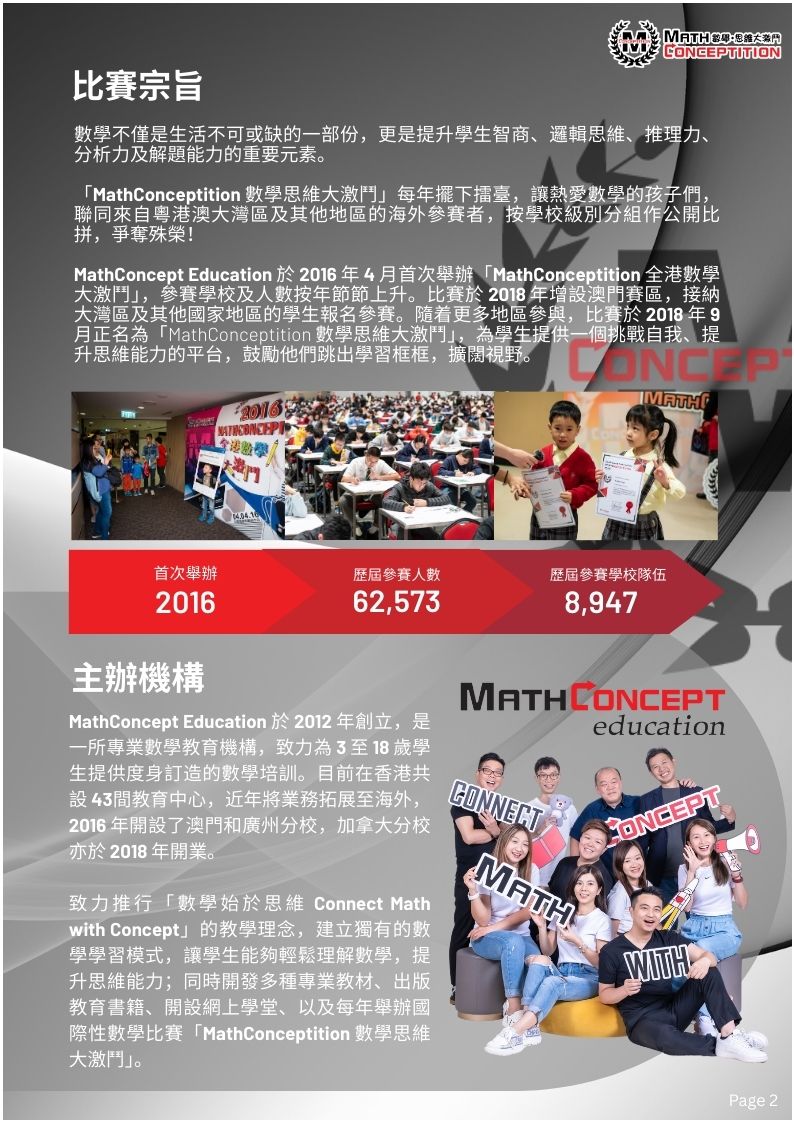 MathConcept 創立於2012年,由一群資深數學教學專家創辦,顅問成員包括著名大學現職教授、暢銷中小學教科書作者、資深數學教師及教學管理專才,致力為 3 至 18 歲學生提供專業及全面的數學培訓。