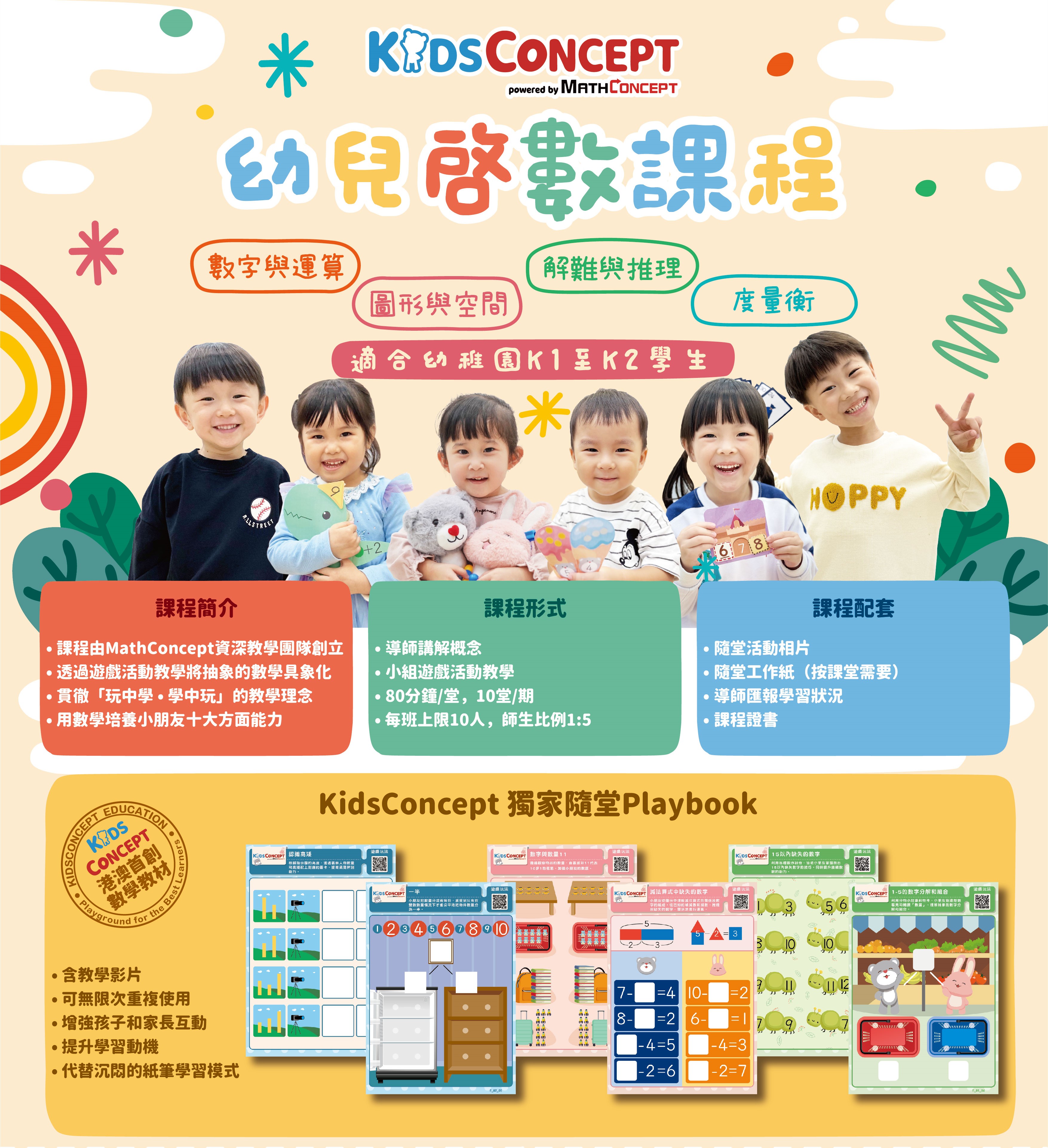 MathConcept 的 Little First Steps 課程專為學前班及低班學生而設。生動有趣的教材加上靈活使用教具的教學方法,讓幼兒提早認識數學的樂趣,為全面啟發他們的數學潛能,踏出重要的第一步。